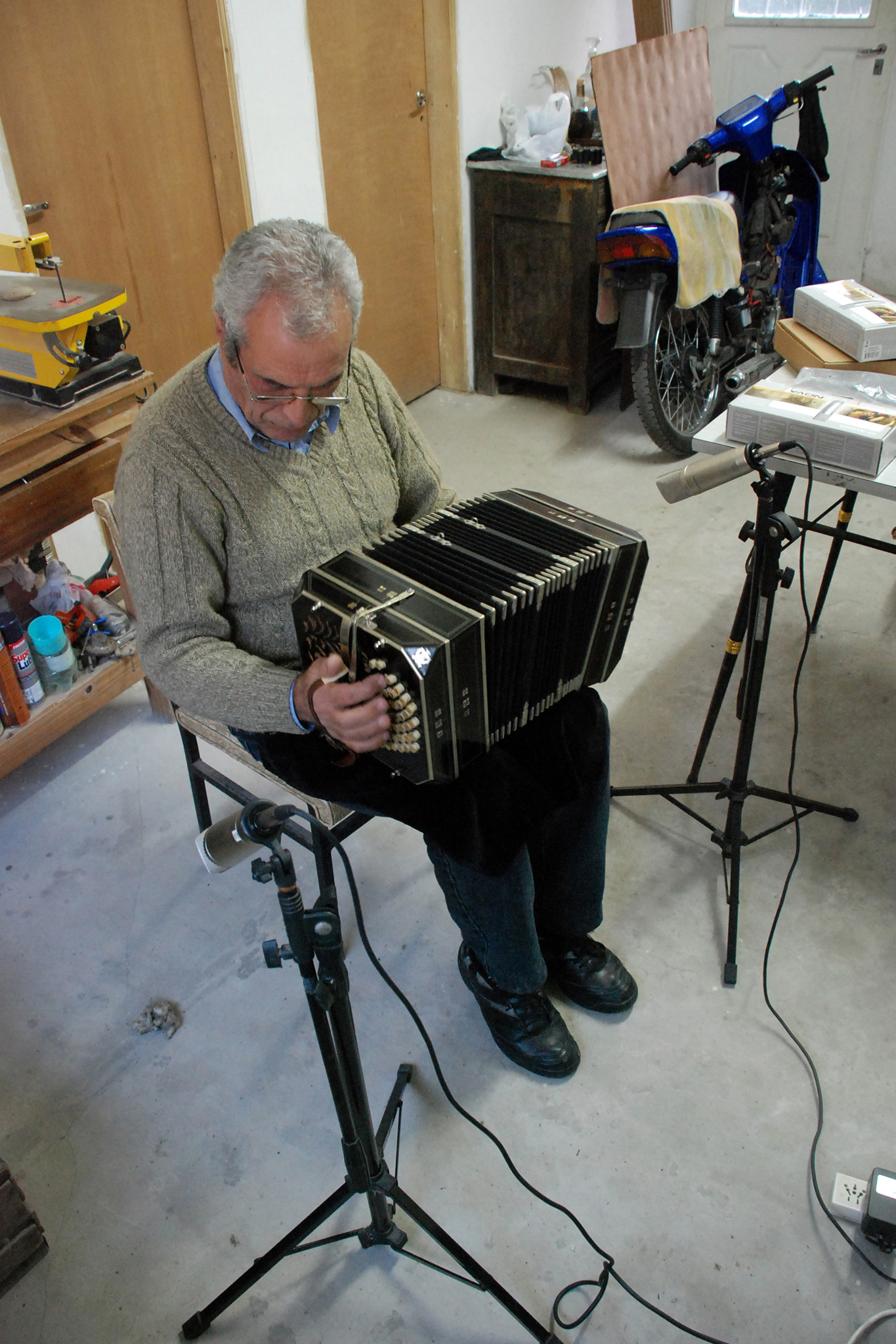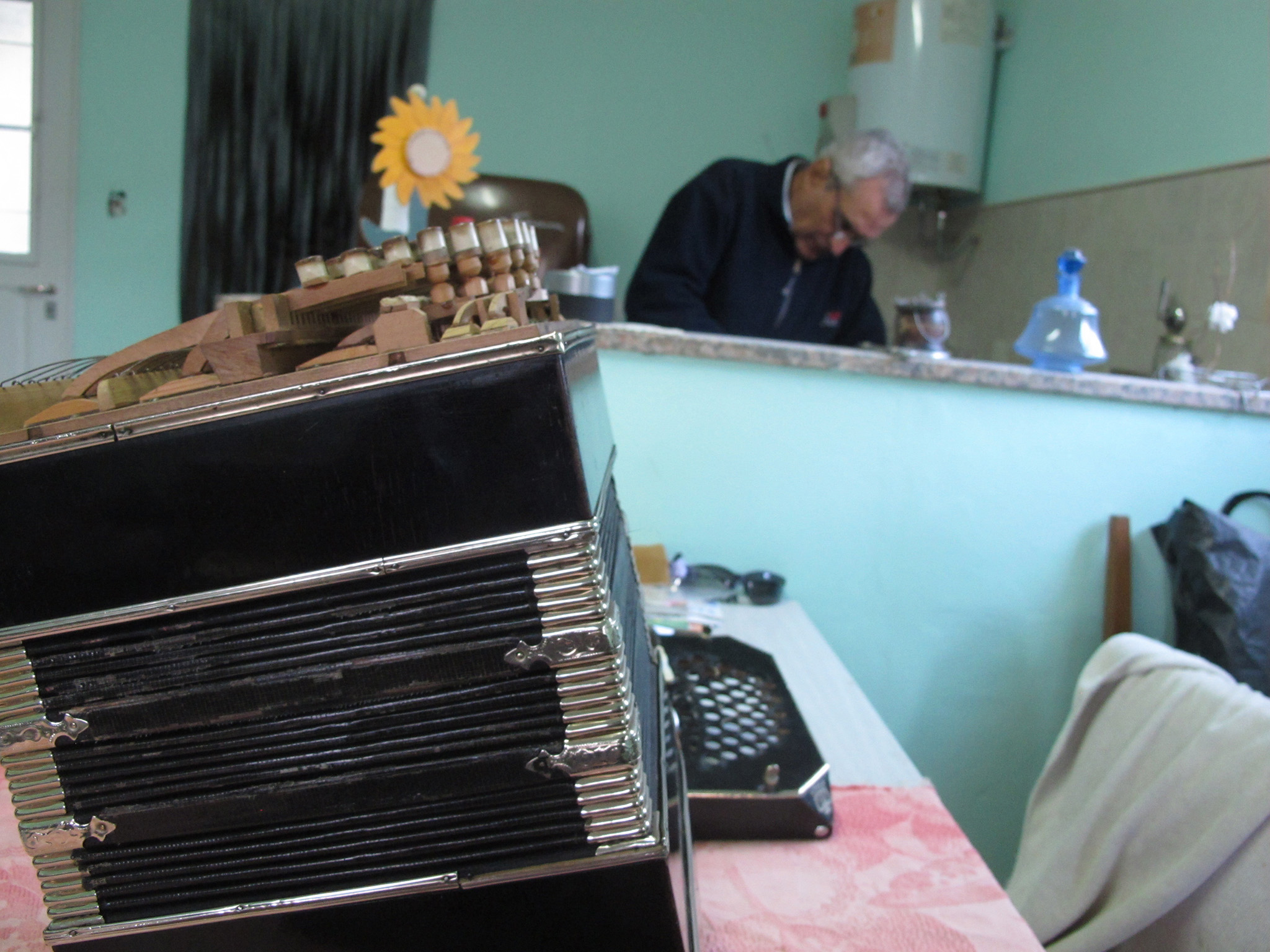“Yo me iba en bicicleta a escucharlo tocar, te hablo del año 60, hasta que un día, mi tío me empezó a dar clases. Pero no podía comprar un bandoneón, mi viejo tenía un sueldo chico y mi vieja era modista, y un bandoneón no era una cosa barata de comprar”.